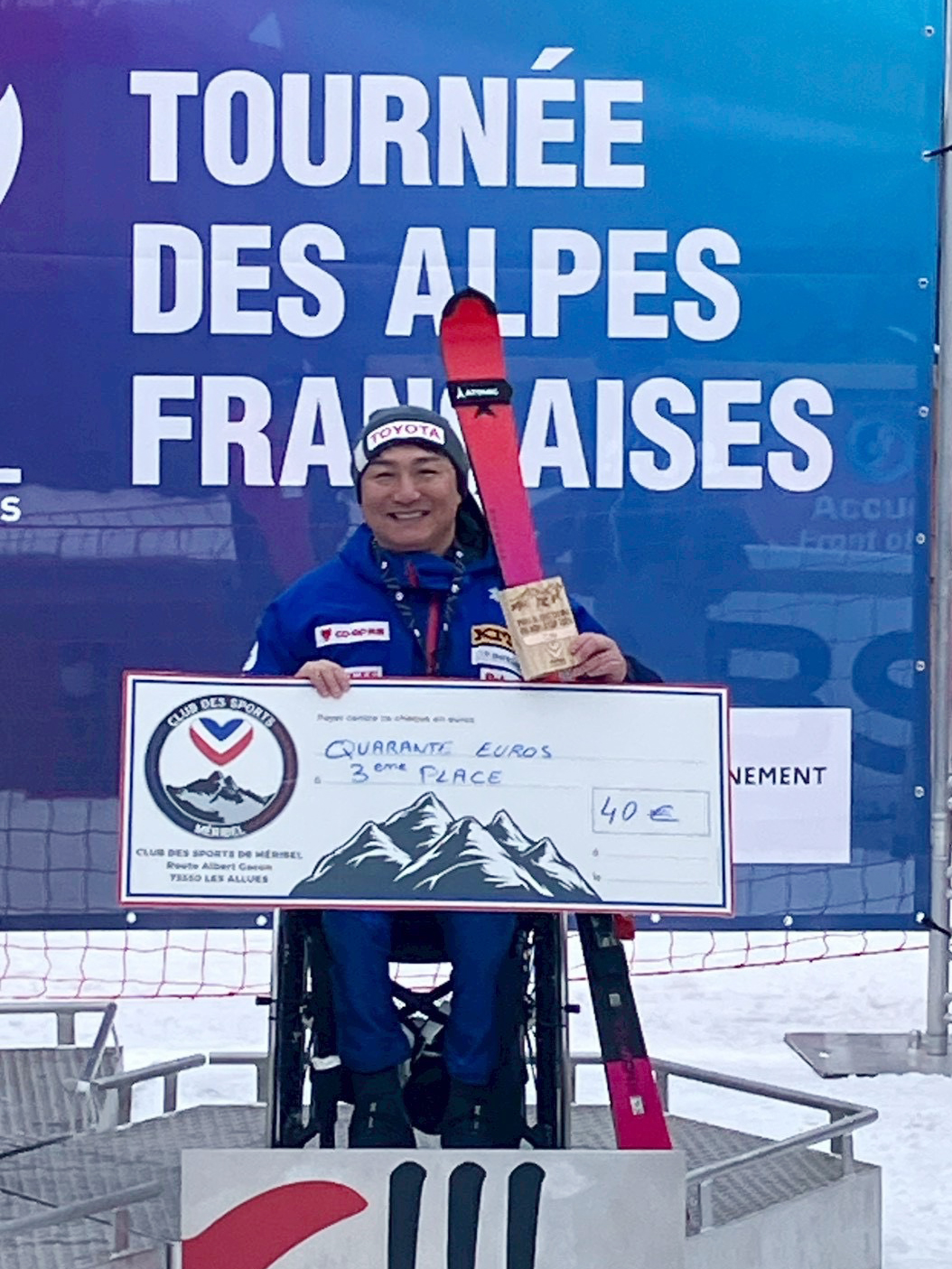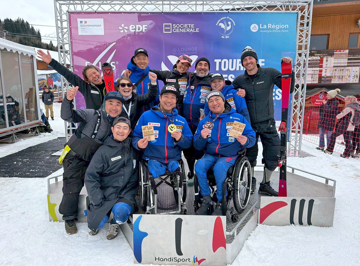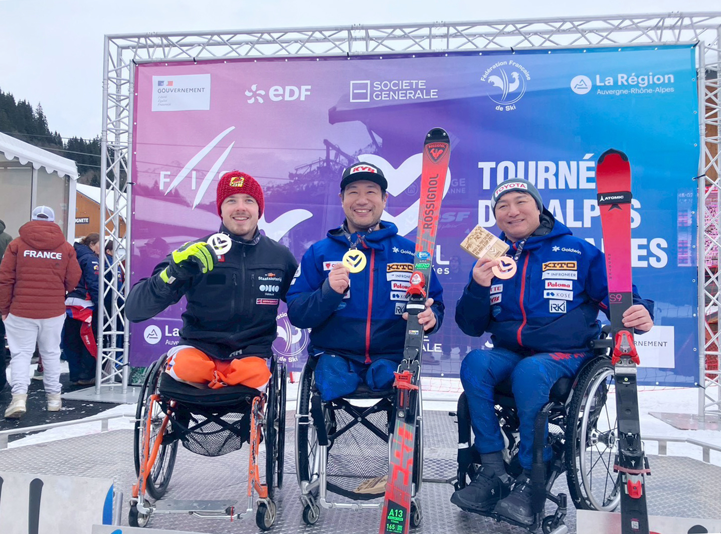 日本代表選手は、フランスのメリベルで開催された回転(SL)第1戦に出場し、男子座位の鈴木猛史選手(カヤバ株式会社)が優勝、同じく座位の森井大輝選手(トヨタ自動車株式会社)が3位入賞、女子立位の本堂杏実選手(株式会社コーセー)が8位と言う結果を残しました。